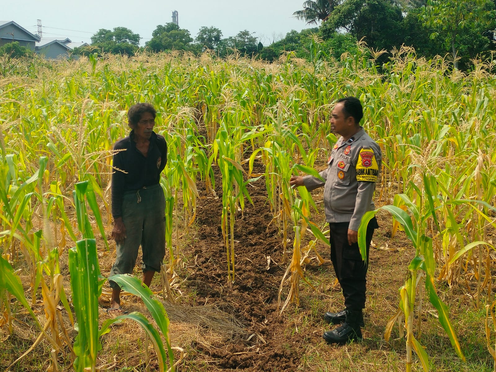 Pantau lahan jagung pok tani sinarjaya kecamatan.puloampel Desa Mangunreja oleh Bhabinkamtibmas Polsek Puloampel