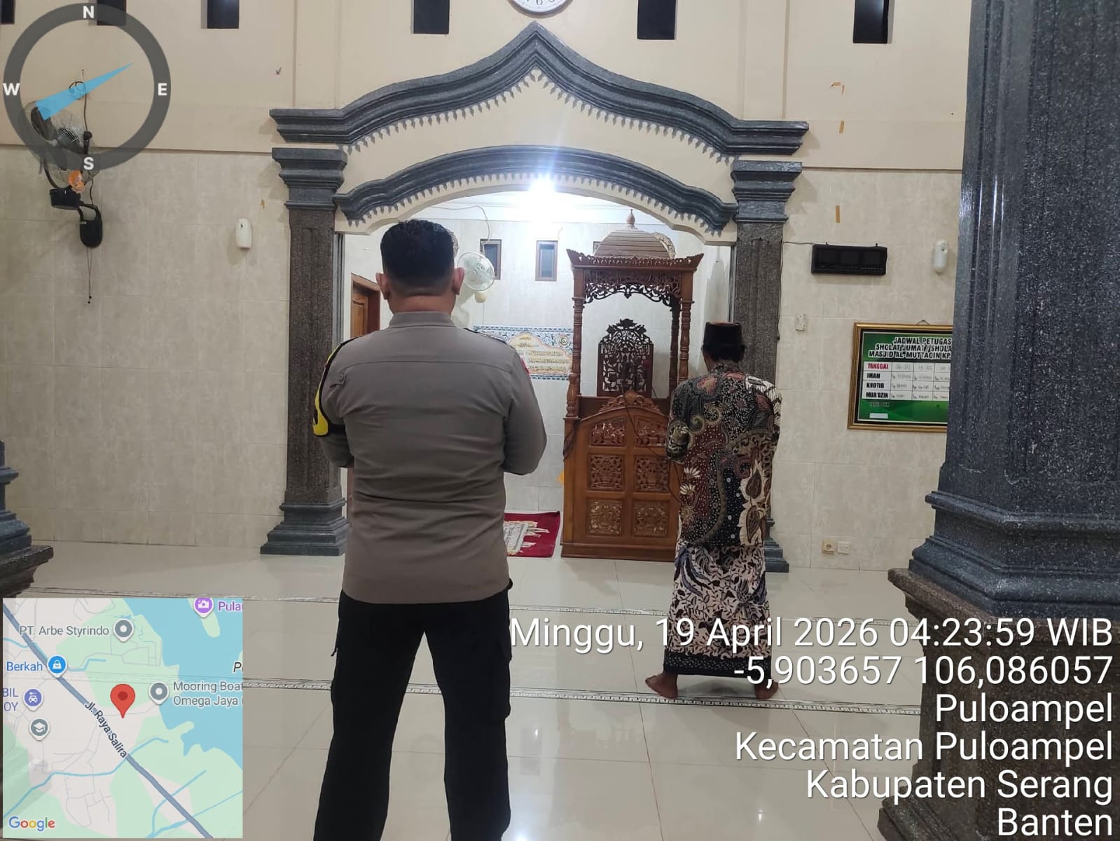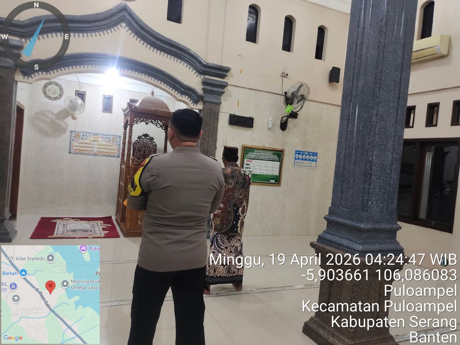 Program SUBLING Kapolda Banten: Bhabinkamtibmas Polsek KSKP Merak Gelar Shalat Subuh Berjamaah di Masjid Al Ikhlas