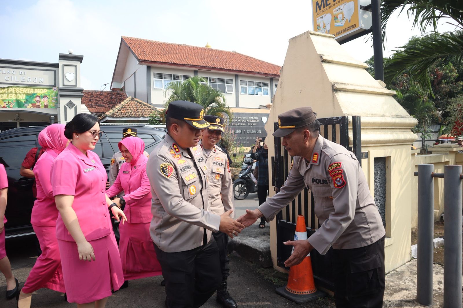 Rombongan Kapolres tiba pukul 09.35 WIB dan disambut langsung oleh Wakapolres Cilegon Kompol Rifki Seftirian Yusuf, Kapolsek Cilegon Kompol Firman Hamid, Kabagops Polres Cilegon AKP Choirul Anam, jajaran perwira Polsek, personel, serta Bhayangkari Polsek Cilegon.