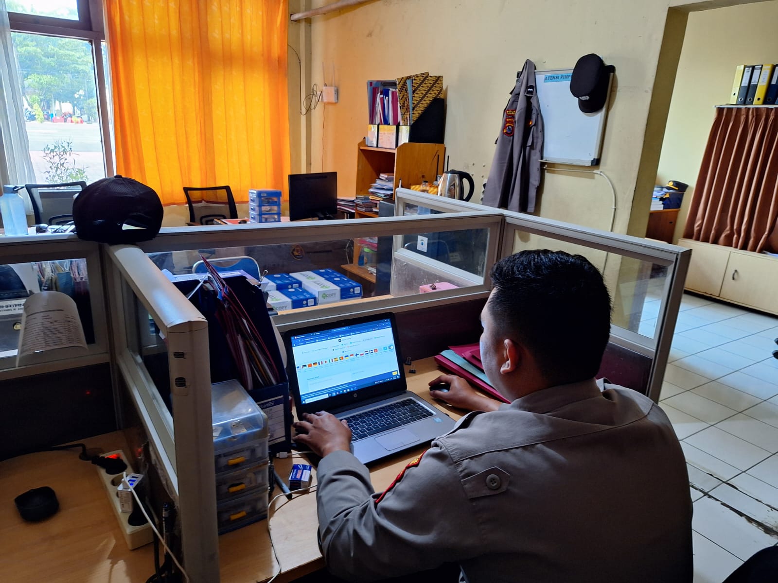 cilegon Polda Banten Staf Logistik melakukan pengisian aplikasi SIMAK dan SIMAN
