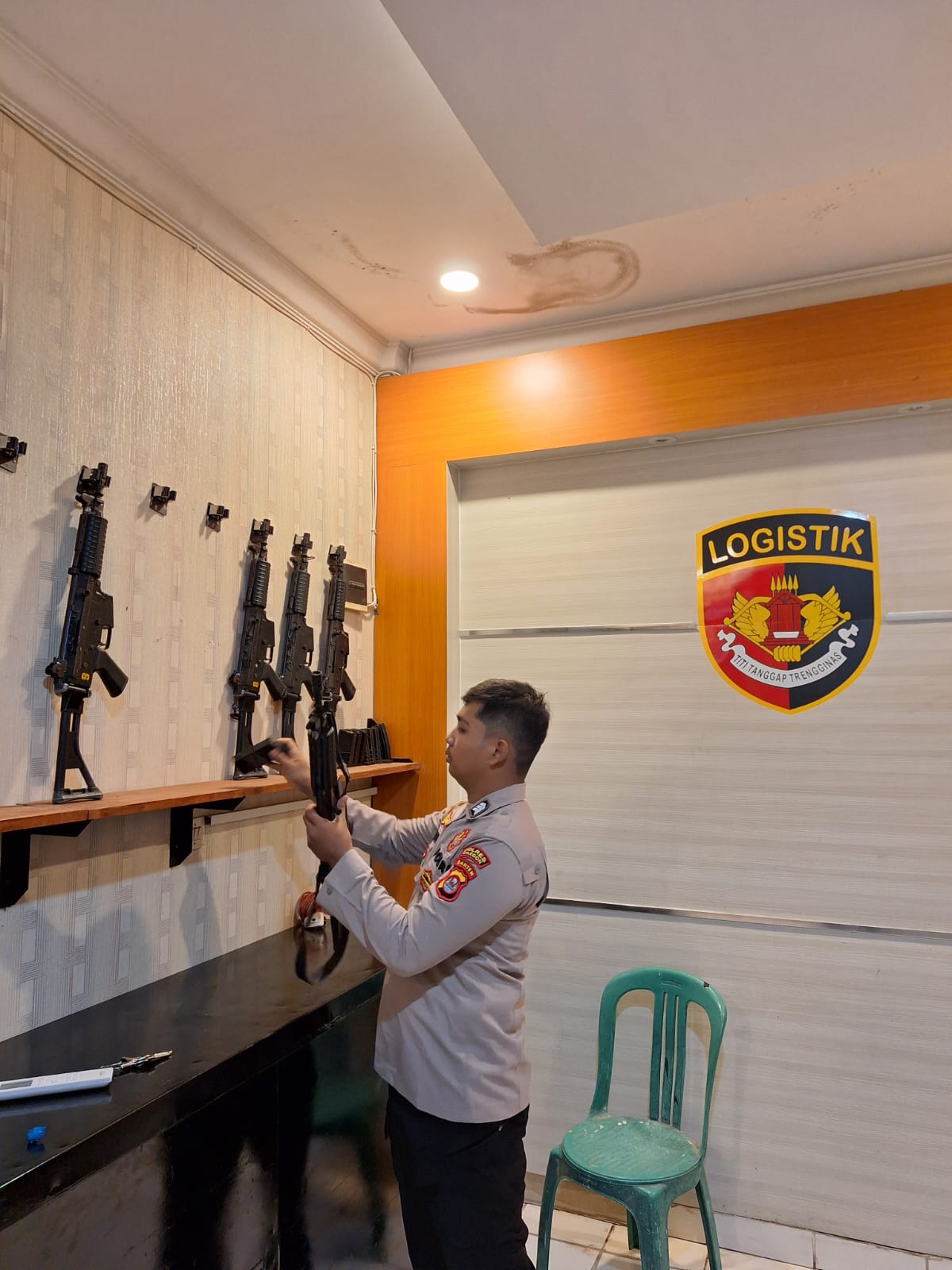 Cilegon,Polres Cilegon Polda Banten., Kabaglog Polres Cilegon KOMPOL Chotijah beserta staf Baglog Melaksanakan pengecekan Barang Inventaris Anggota berupa HT dan Senpi.