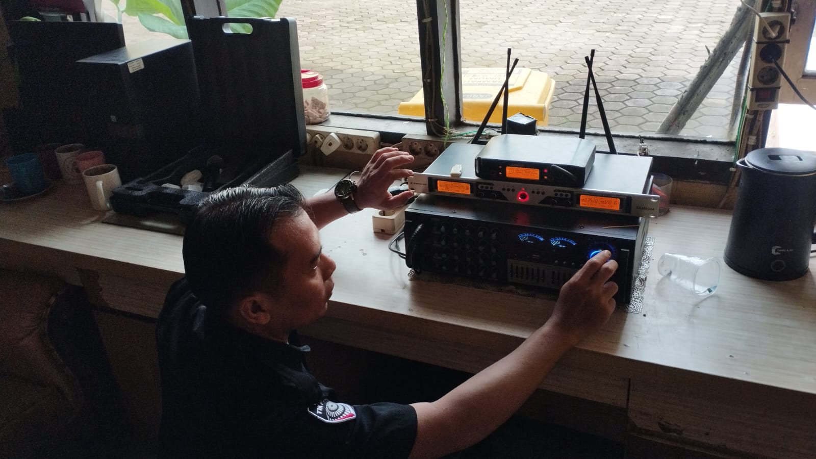Anggota Tik Polres Cilegon Menyiapkan Sarana dan Prasarana Sound Sytem