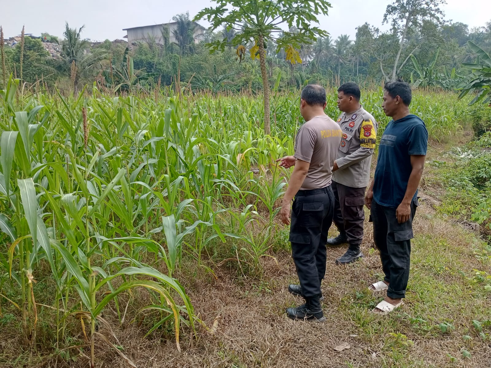 Dalam kesempatan tersebut bahwa Kapolsek Anyar, Bhabinkamtibmas Polsek Anyar Polres Cilegon Polda Banten bersama Kelompok Tani di Kp. Cipaas Desa Bunihara Kec. Anyar Monitoring dan Pedampingan kegiatan Poktan di wilayahnya lahan yang sedang di tanami Jagung dengan masa usia tanam 2 bulan dengan luas 5 Ha.