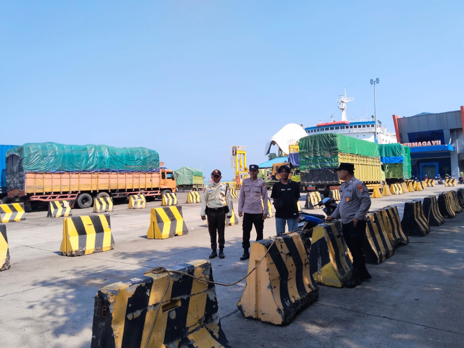 Cilegon - Personel Polsek Kskp Merak Polres Cilegon Polda Banten melaksanakan sambang dan patroli kawasan pelabuhan merak dalam rangka menjaga Harkamtibmas di Kawasan Pelabuhan Merak, Selasa (29/07/2025).