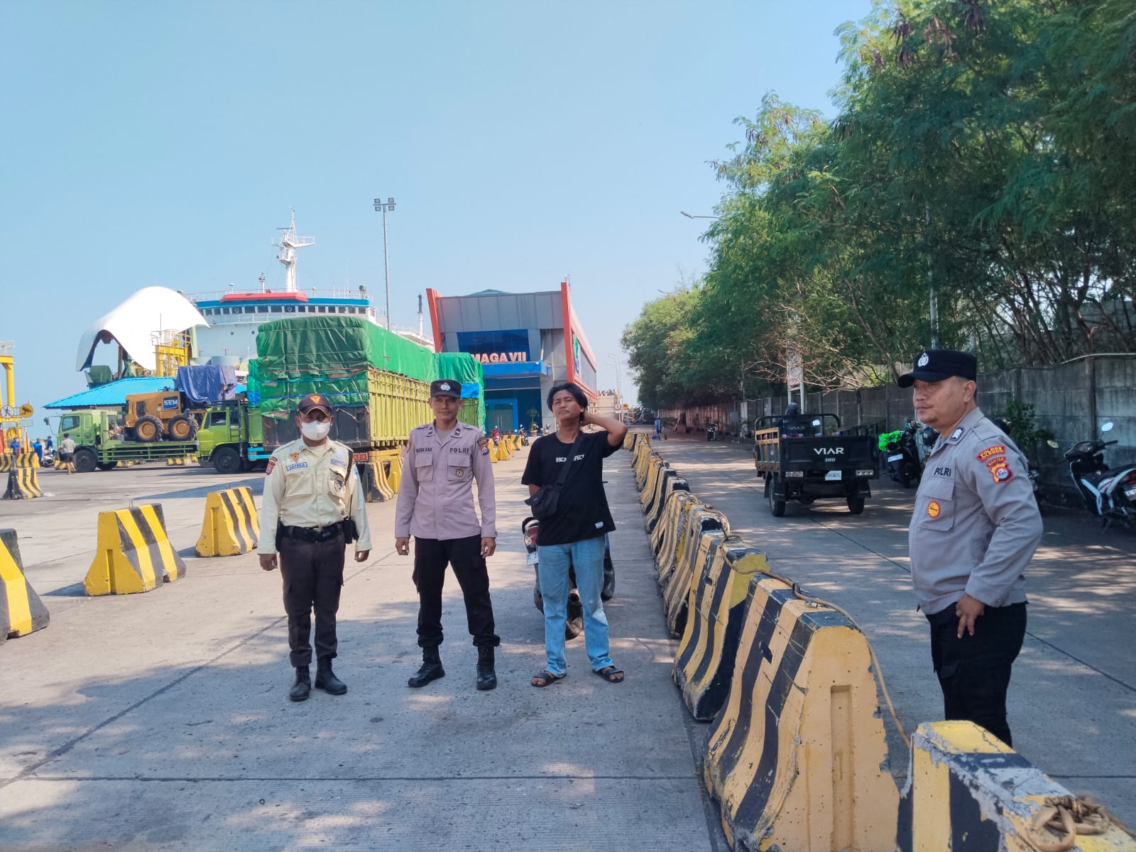 Cilegon - Personel Polsek Kskp Merak Polres Cilegon Polda Banten melaksanakan sambang dan patroli kawasan pelabuhan merak dalam rangka menjaga Harkamtibmas di Kawasan Pelabuhan Merak, Selasa (29/07/2025).