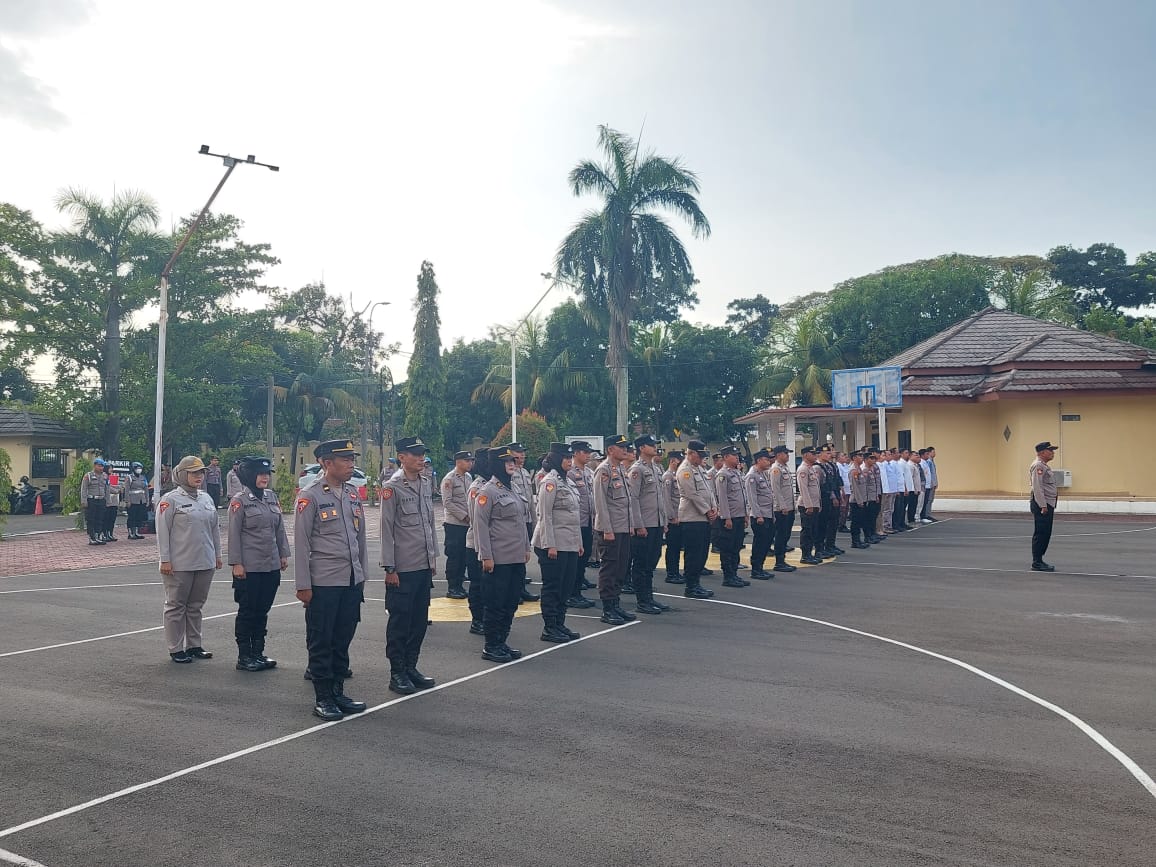 Polres Cilegon anggota yang melaksanakan apel mendengarkan dengan baik arahan
