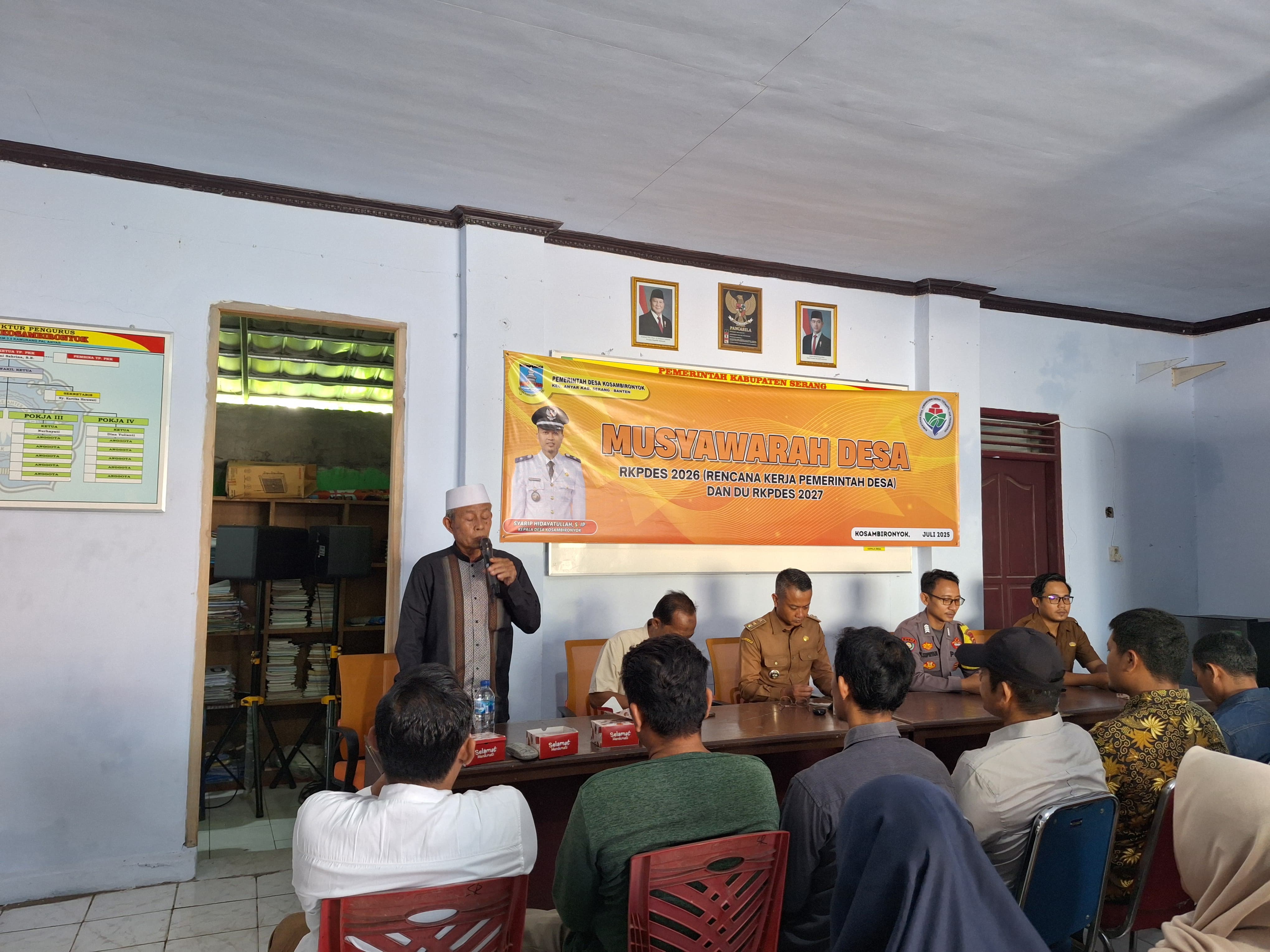 Kapolres Cilegon Polda Banten AKBP Dr. Martua Raja Taripar Laut Silitonga melalui Kapolsek Anyar Polres Cilegon Polda Banten IPTU Iwan Sofiyan, menjelaskan bahwa Desa Kosambironyok Kec. Anyar melaksanakan kegiatan Musdes penetapan RKPDes kec. Th. 2026 yang dilaksanakan oleh Pemerintahan Ds. Kosambironyok Kec. Anyar