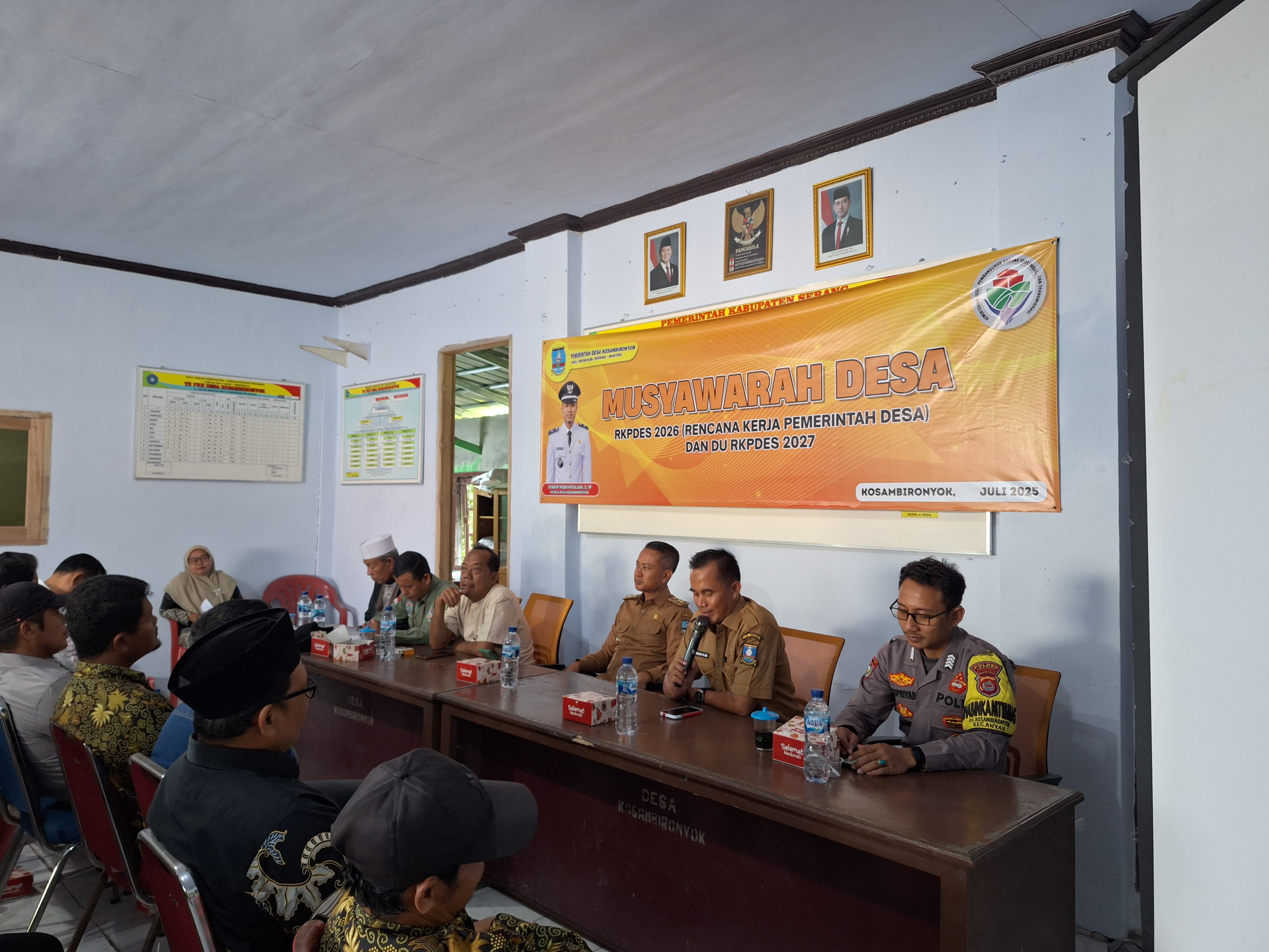 Kapolres Cilegon Polda Banten AKBP Dr. Martua Raja Taripar Laut Silitonga melalui Kapolsek Anyar Polres Cilegon Polda Banten IPTU Iwan Sofiyan, menjelaskan bahwa Desa Kosambironyok Kec. Anyar melaksanakan kegiatan Musdes penetapan RKPDes kec. Th. 2026 yang dilaksanakan oleh Pemerintahan Ds. Kosambironyok Kec. Anyar