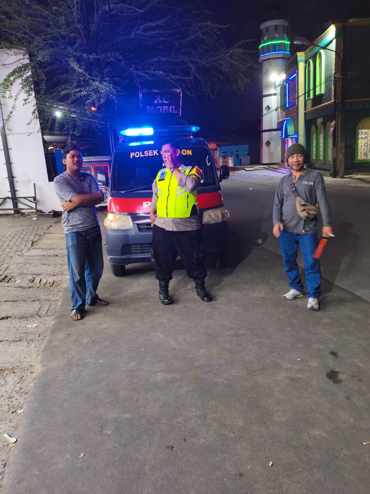 Anggota samapta Polsek Cilegon Laksanakan Blue light patrol antisipasi kejahatan malam hari jaga keamanan warga dan lingkungan wilayah nya