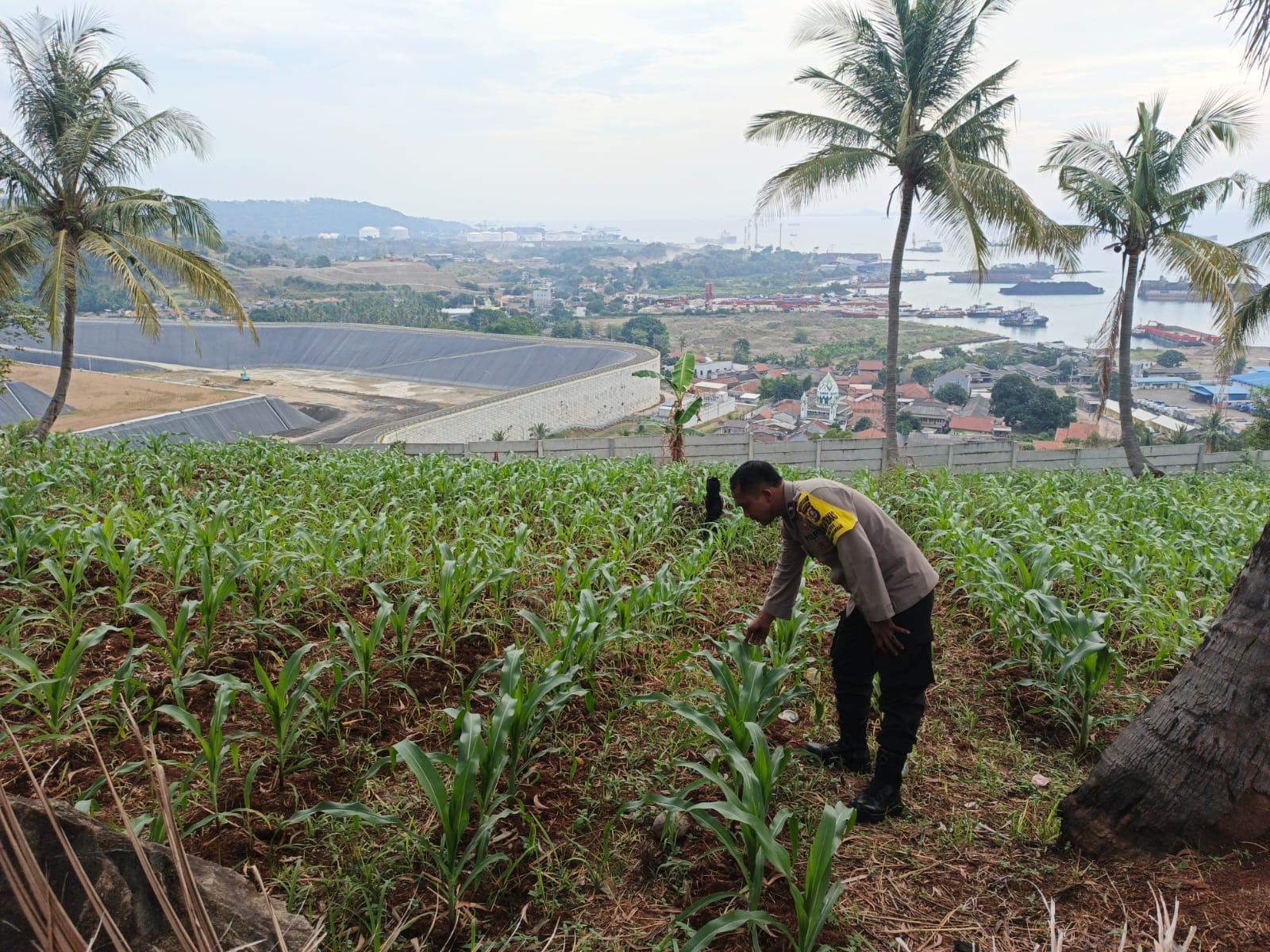 Oleh sebab itu Kapolsek Pulomerak bersama bhabinkamtibmas polsek Pulomerak bersama masyarakat Kel. Lebakgede kec. Pulomerak meninjau lahan jagung, ujarnya