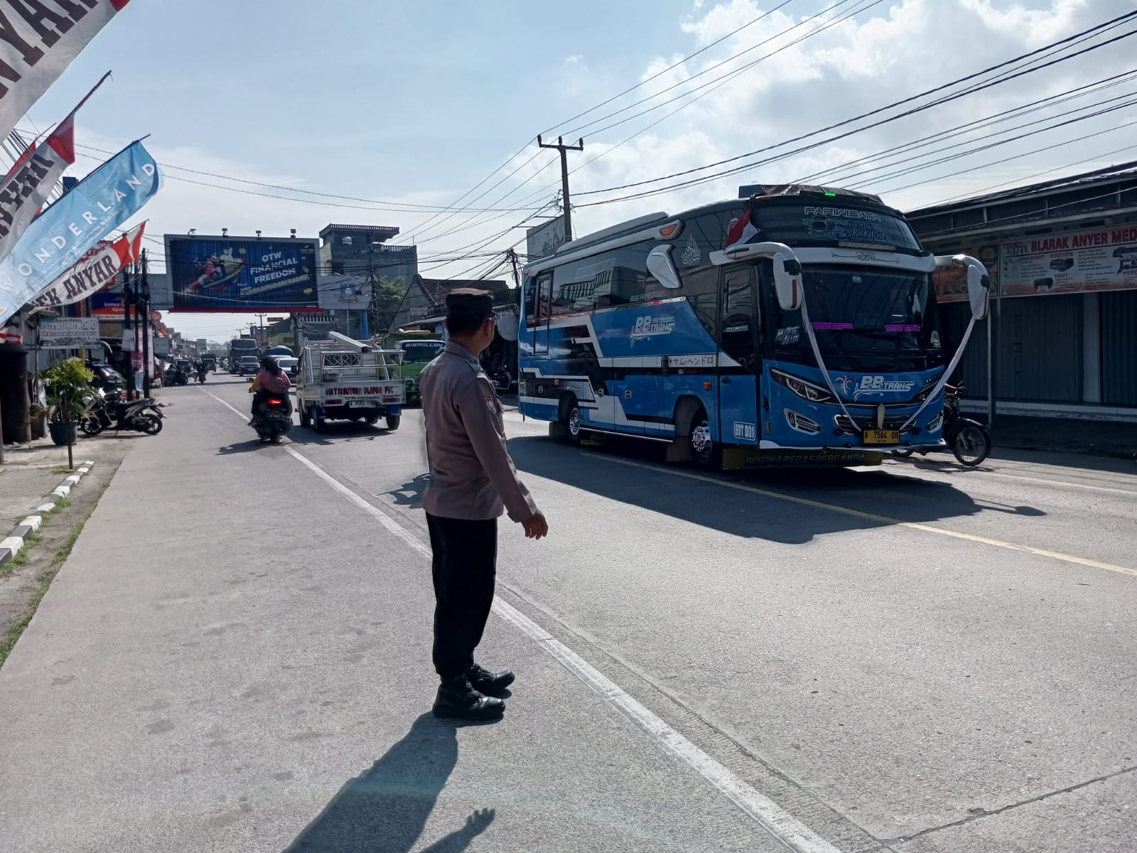 Polsek Anyar Mengatur Lalu-Lintas Pada Arus Wisata di Jl. Raya Anyar.