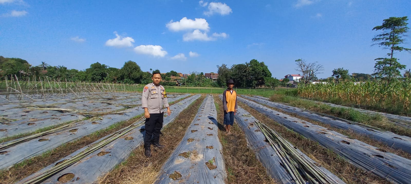 Bhabinkamtibmas Polsek Ciwandan Polres Cilegon Polda Banten, memantau Lahan Untuk Persiapan Tanaman jagung Kelompok Tani Lingkungan Binaan.