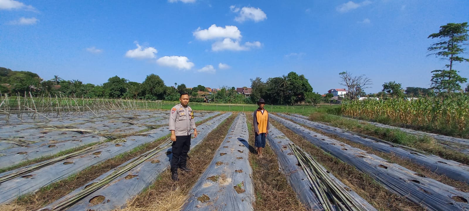 Bhabinkamtibmas Polsek Ciwandan Polres Cilegon Polda Banten, memantau Lahan Untuk Persiapan Tanaman jagung Kelompok Tani Lingkungan Binaan.