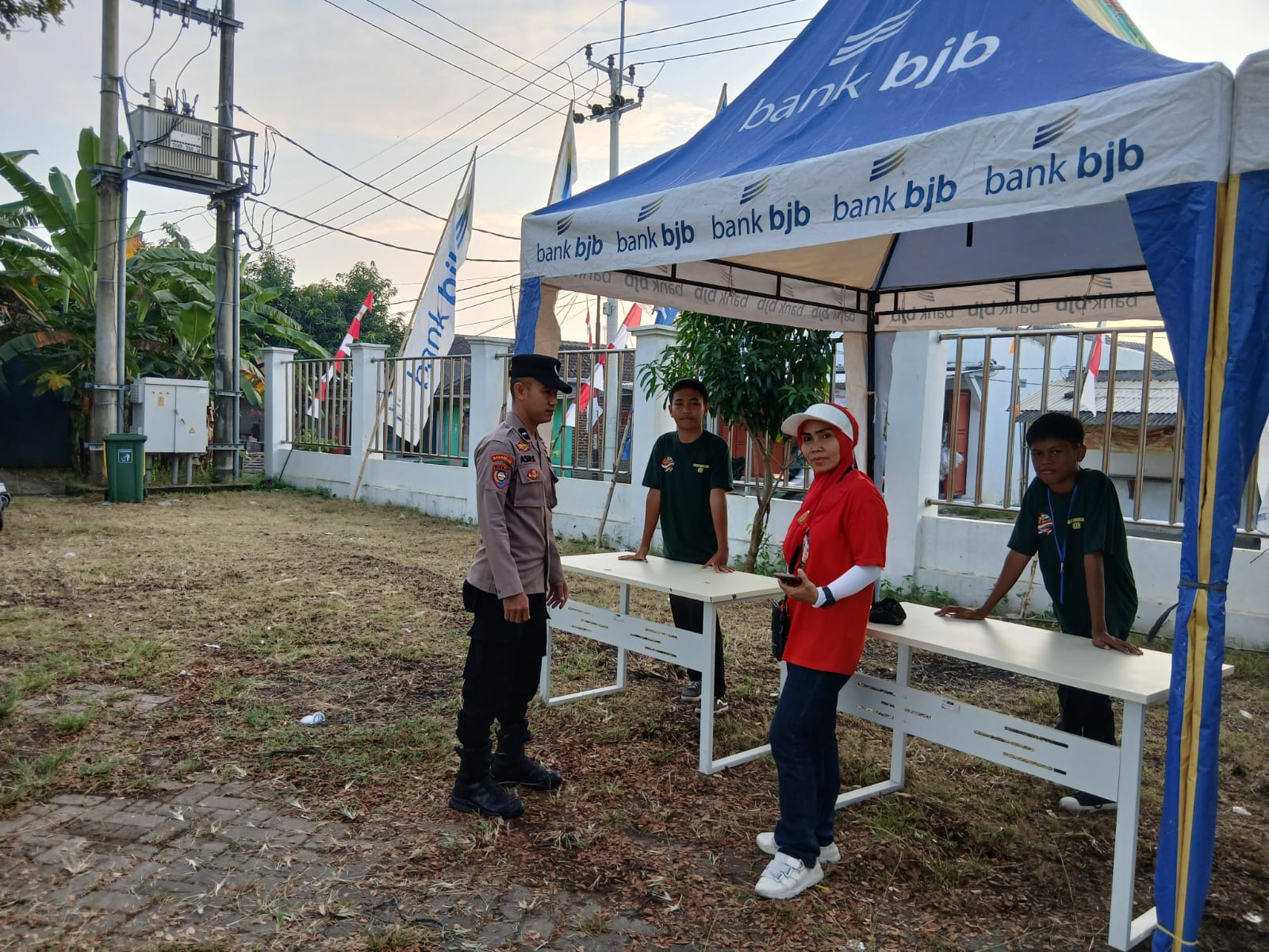 Cilegon - Bhabinkamtibmas Polsek Ciwandan Polres Cilegon Polda Banten Menghadiri Kegiatan Olahraga bersama yang dilaksanakan oleh warga masyarakat Lingkungan Kelurahan Kubangsari Kecamatan Ciwandan Kota Cilegon, Minggu (03/08/2028).
