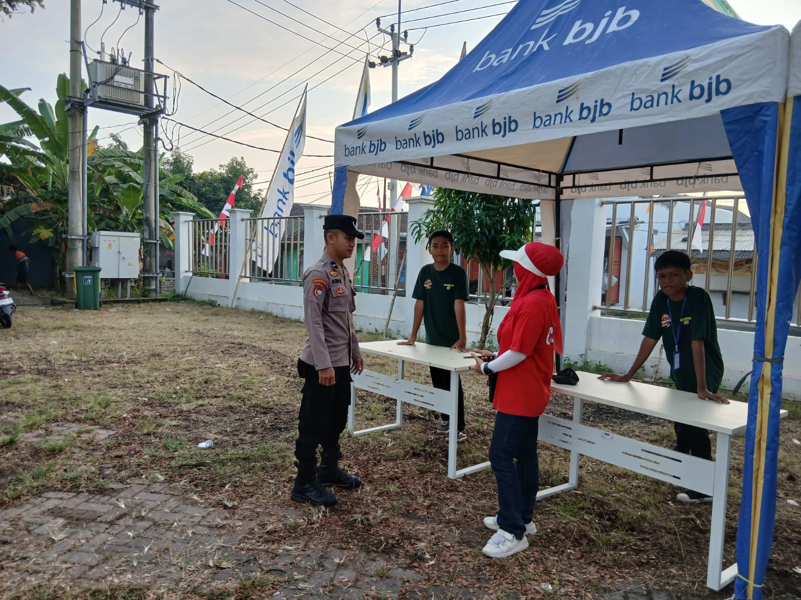 Cilegon - Bhabinkamtibmas Polsek Ciwandan Polres Cilegon Polda Banten Menghadiri Kegiatan Olahraga bersama yang dilaksanakan oleh warga masyarakat Lingkungan Kelurahan Kubangsari Kecamatan Ciwandan Kota Cilegon, Minggu (03/08/2028).