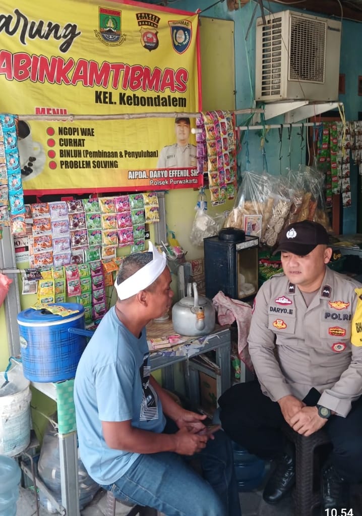 -POLRES CILEGON- Polda Banten. Dalam Rangka Menjalin silaturahmi Masyarakat dan Bhabinkamtibmas Aiptu Daryo.E Ngobrol santai Menerima kunjungan Masyarakat santai ngobrol asik bersama warga mendengarkan keluh kesah Masyarakat di Warung Kopi Bhabinkamtibmas merupakan terobosan supaya dekat dengan Masyarakat di Link.Daliran Kelurahan Kebondalem Kecamatan Purwakarta Kota Cilegon.Senin.(18-08-2025).