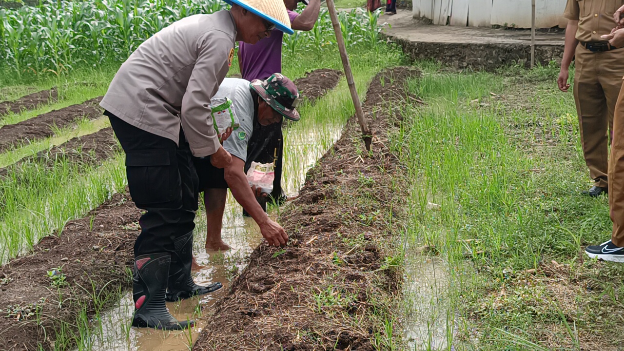 Cilegon - apolsek Pulomerak Polres Cilegon Polda Banten dalam pelaksanaan tugasnya melakukan kegiatan bersama kelompok tani Kel. Lebakgede kec. Pulomerak, Senin 18/8/25