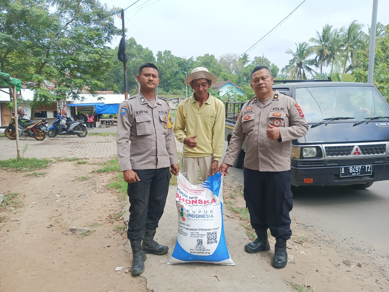 Cilegon - Dalam upaya mendukung program ketahanan pangan nasional, Kanit Binmas Dan Anggota Bhabinkamtibmas Polsek Ciwandan Polres Cilegon Polda Banten Berikan Dukungan Pupuk Dan Benih Jagung Kepada Petani Binaan, Senin (18/08/2025).