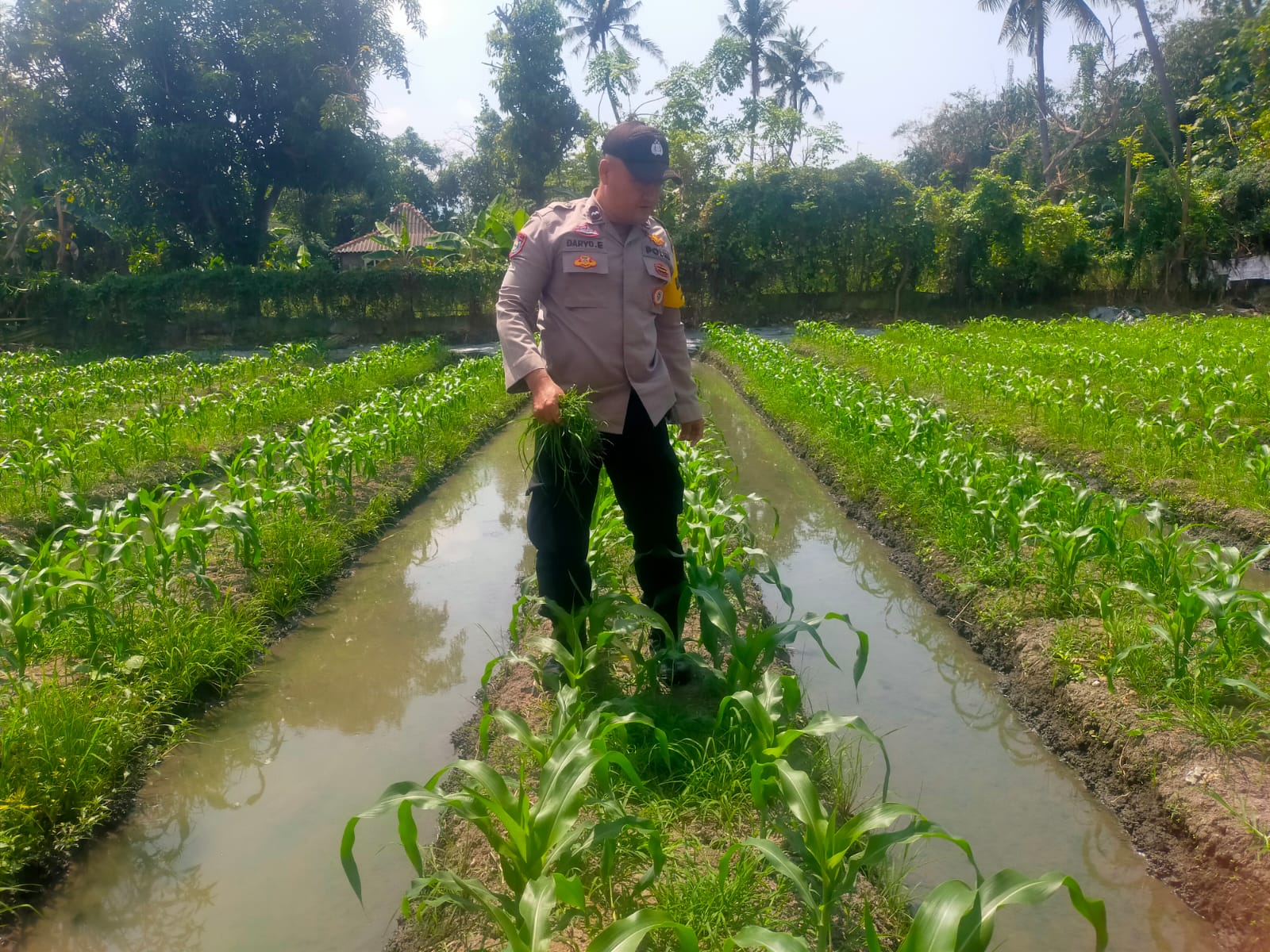 -POLRES CILEGON- Polda Banten. Dalam Rangka Mendukung Program Ketahanan,Bhabinkamtibmas Aiptu Daryo.E Polsek Purwakarta Polres Cilegon Melaksanakan Pendampingan Kontrol pertumbuhan Tanam Jagung di Link. Daliran Kelurahan Kebondalem Kecamatan Purwakarta Kota Cilegon.Selasa.(19-08-2025)