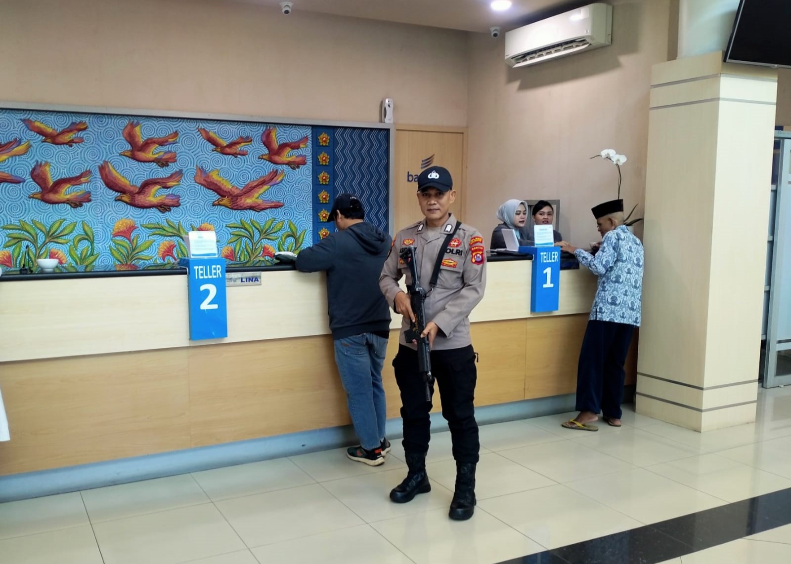 Cilegon – Polres Cilegon Polda Banten, Sebagai antisipasi adanya tindak kejahatan serta demi terciptanya rasa aman dan nyaman bagi para nasabah dan karyawan Bank maupun perusahan, Personil Satuan Pamobvit Polres Cilegon lakukan pengamanan dilengkapi dengan senjata laras Panjang. Rabu (20/08/2025).