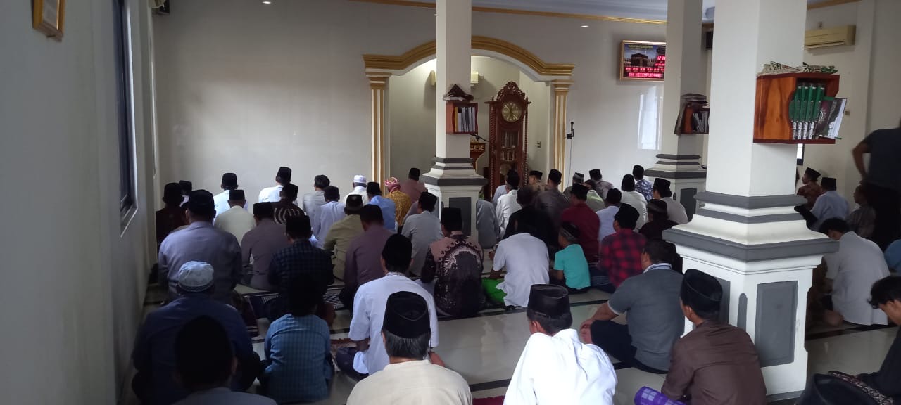 Kapolsek Purwakarta Polres Cilegon IPTU Sukanda bersama anggota Bhabinkamtibmas Bripka Agustoni memakmurkan masjid sama masyarakat melaksanakan sholat Jumat berjamaah di Masjid Baiturrohman Kel.Kotabumi Kecamatan Purwakarta