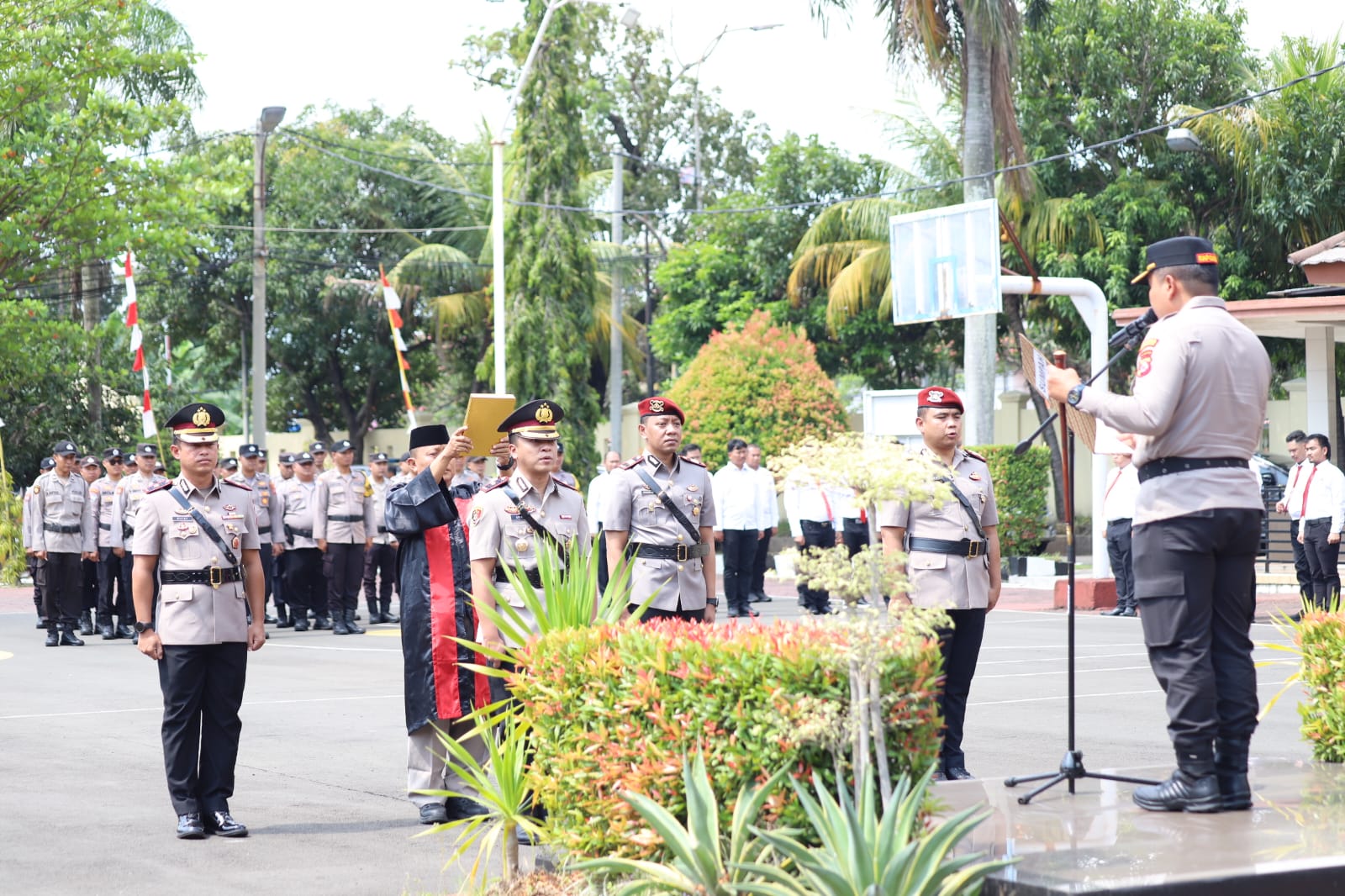 Rangkaian acara diawali dengan pengambilan sumpah jabatan, dilanjutkan penandatanganan fakta integritas, yang disaksikan langsung oleh PJU dan para perwira Polres Cilegon.