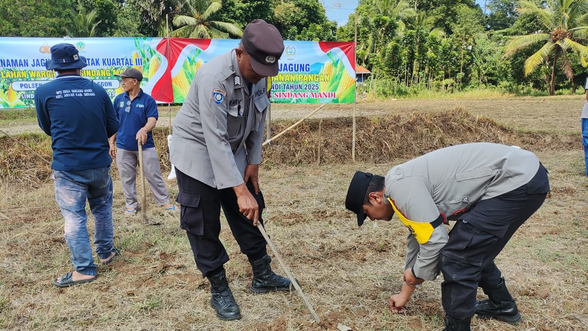 Kapolres Cilegon AKBP AKBP Dr. Martua Raja Taripar Laut Silitonga Melalui Kapolsek Anyar Polres Cilegon IPTU Iwan Sofiyan Bertempat di Lahan Kp. Babakan Desa Sindang Mandi Kecamatan Anyar Kabupaten Serang Dilaksanakan Kegiatan Penanaman Jagung Kuartal III yang dilaksanakan Oleh BUMDES Pabeasan Sindang Mandi dan Kelompok Tani Buyut Ganing dalam Rangka Mendukung Swasembada Pangan 2025 Serta Implementasi Program Prioritas Asta Cinta Presiden Republik Indonesia