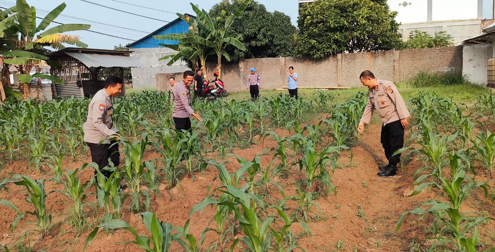 Pengencekan Pertumbuhan Tanam jagung Rutin di Lakukan Kapolsek Purwakarta dan Anggota dalam Rangka Memastikan Pertumbuhan Baik tidak ada hambatan