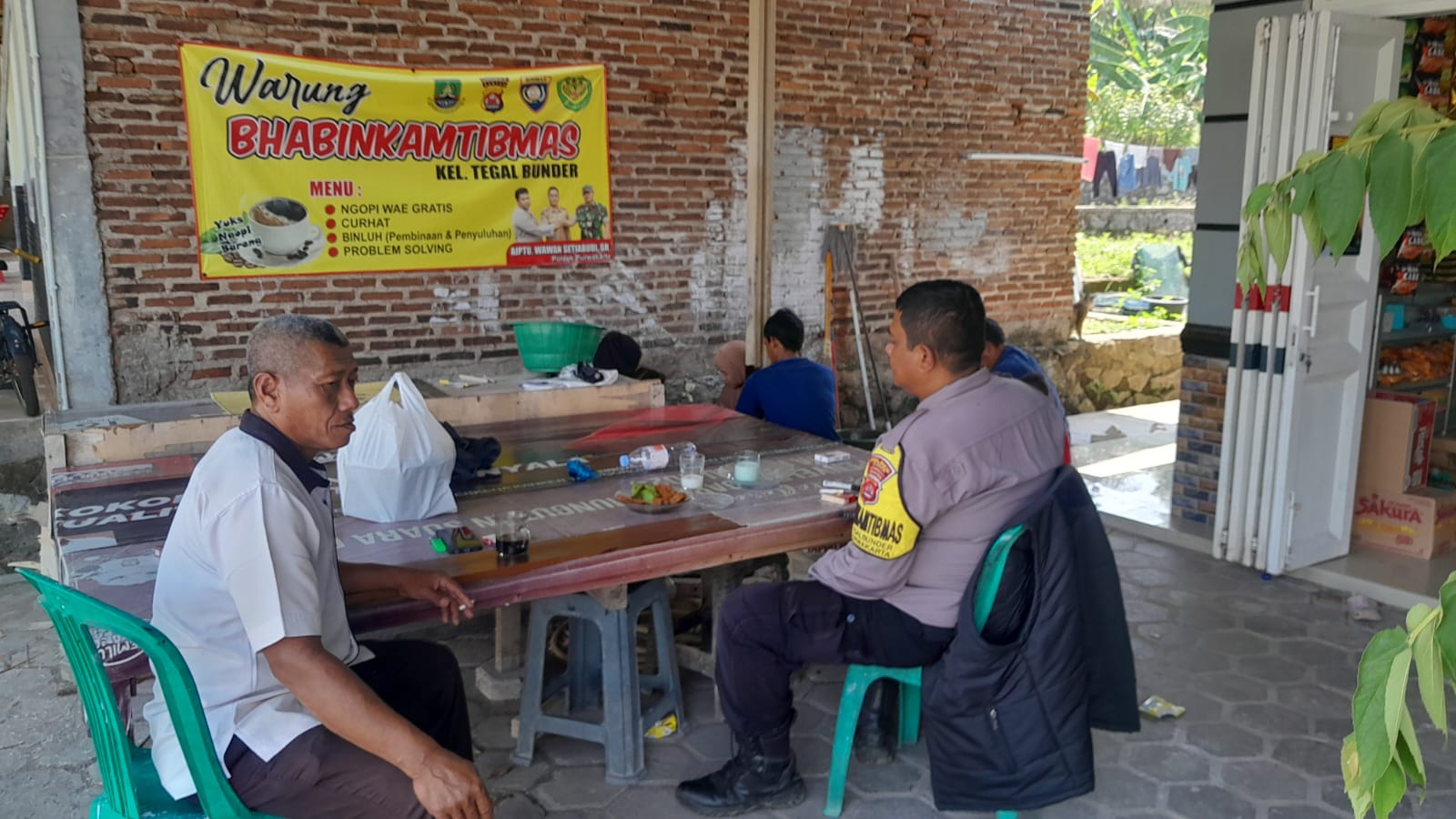 mendengarkan keluh kesah Masyarakat di Warung Kopi Bhabinkamtibmas