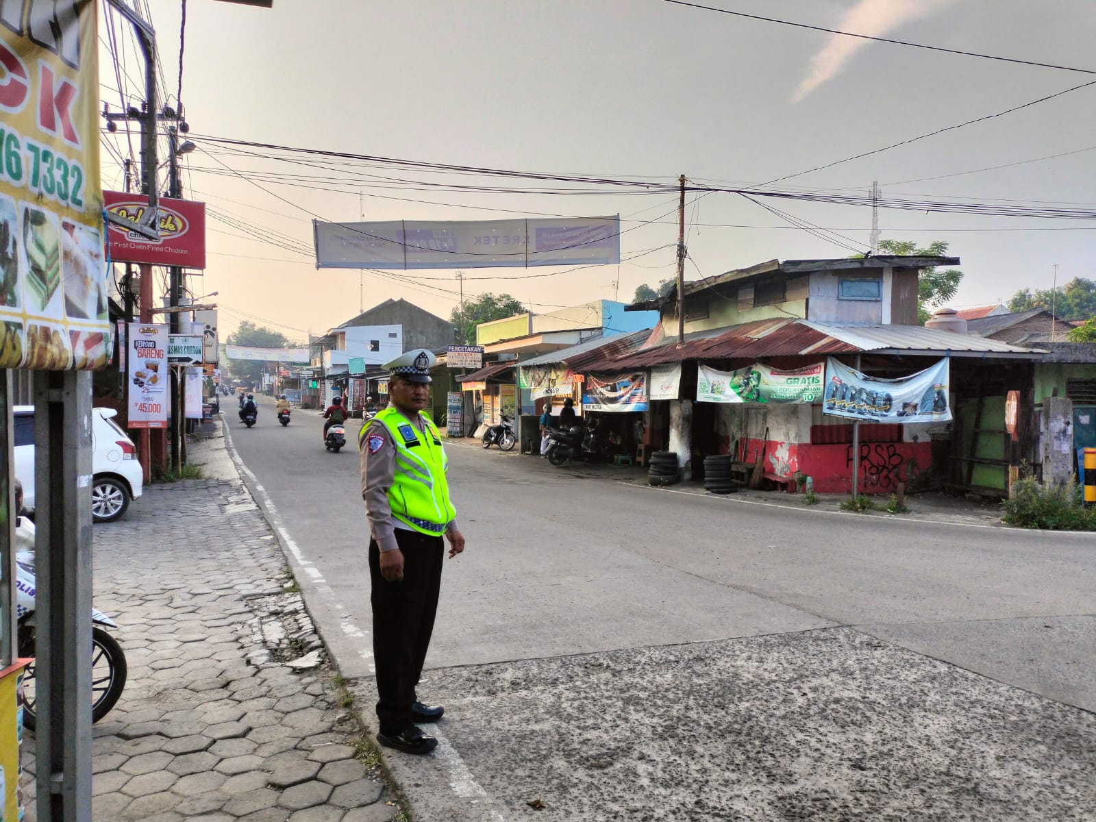 Cooling Sistem Kamtibmas: Polres Cilegon Atur Arus Lalu Lintas di Perempatan Jalan Arteri