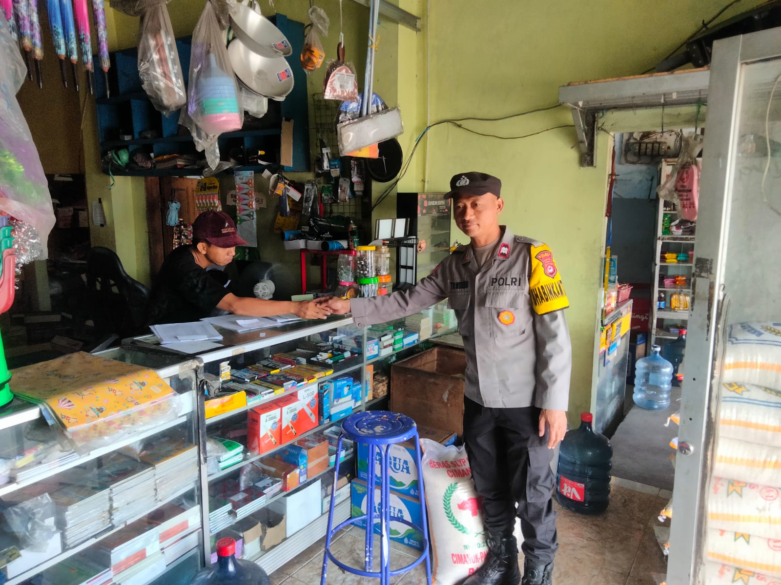 Bhabinkamtibmas Polsek Ciwandan berinteraksi secara langsung dengan pemilik warung sembako, mendengarkan keluhan dan masukan, serta memberikan himbauan agar menjaga harga sembako tetap stabil dan terjangkau bagi masyarakat.