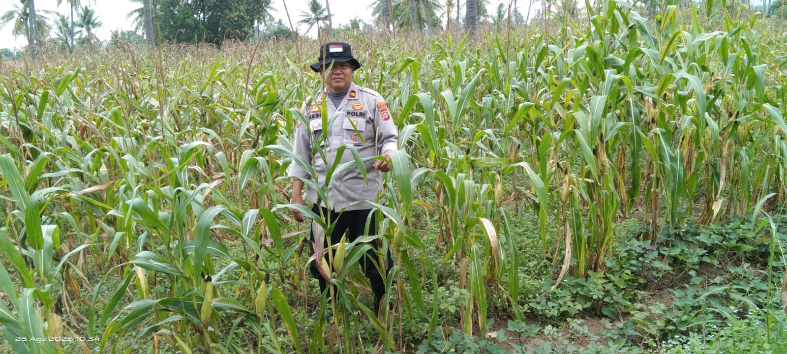 Cilegin - Dalam rangka mendukung program ketahanan pangan Kanit Samapta dan Bhabinkamtibmas Polsek Bojonegara Polres Cilegon Polda Banten guna mewujudkan Asta Cita menuju Swasembada Pangan nasional berbasis lokal, melaksanakan kegiatan pengecekan dan pendataan lahan pekarangan milik warga yang digunakan sebagai lahan perkebunan tanaman jagung , Jumat (29/08/2025).