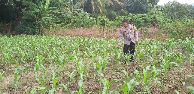 Dalam Pengecekan Tanaman Jagung Bhabinkamtibmas Bripka Agustoni menyampaikan kepada warga Mendukung merupakan wujud Polri Mendukung Program Ketahanan Pangan Pemerintah yang sukses serta Kedepan Indonesia Menciptakan Swasembada Pangan di Bidang Ketahanan Pangan Tanaman Jagung Polri Kwalitas Unggul ekspor Sehingga Masyarakat Maju dan Sejahtera serta memberikan Penyuluhan Polri hadir untuk Masyarakat menjadi wujud Polri peduli dan mendukung penuh Asta Cita Presiden Republik Indonesia bidang Ketahanan Pangan sebagai Langkah dalam membangun desa yang mandiri, aman, dan sejahtera, sejalan dengan upaya mewujudkan ketahanan pangan nasional yang berkelanjutan.