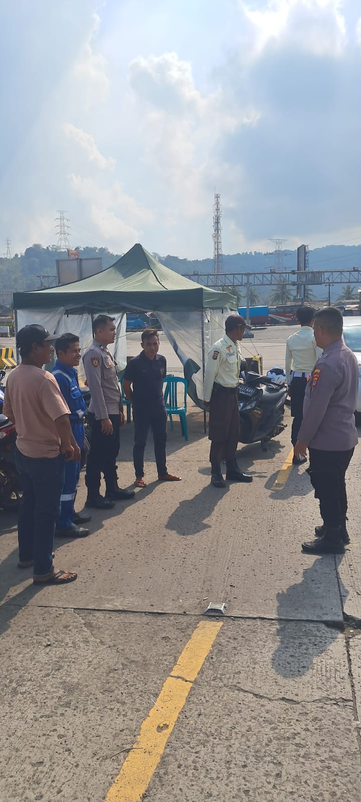 Cilegon - Personel Polsek Kskp Merak Polres Cilegon Polda Banten melaksanakan sambang dan patroli kawasan pelabuhan merak dalam rangka menjaga Harkamtibmas di Kawasan Pelabuhan Merak, Jumat (29/08/2025).