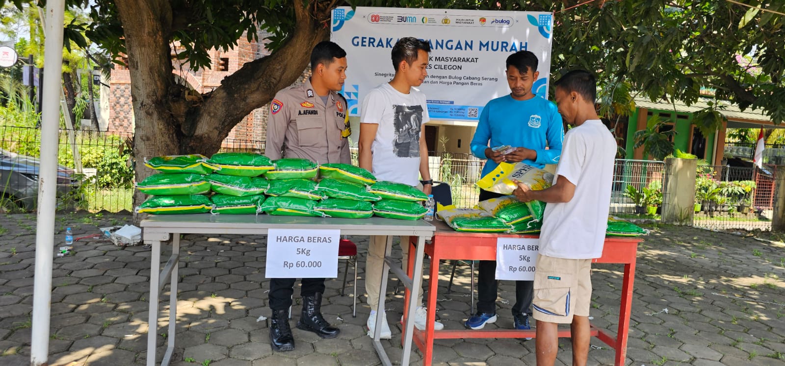 Polsek Cibeber Gelar Operasi Pasar, Beras Murah Bulog Diserbu Warga Cilegon