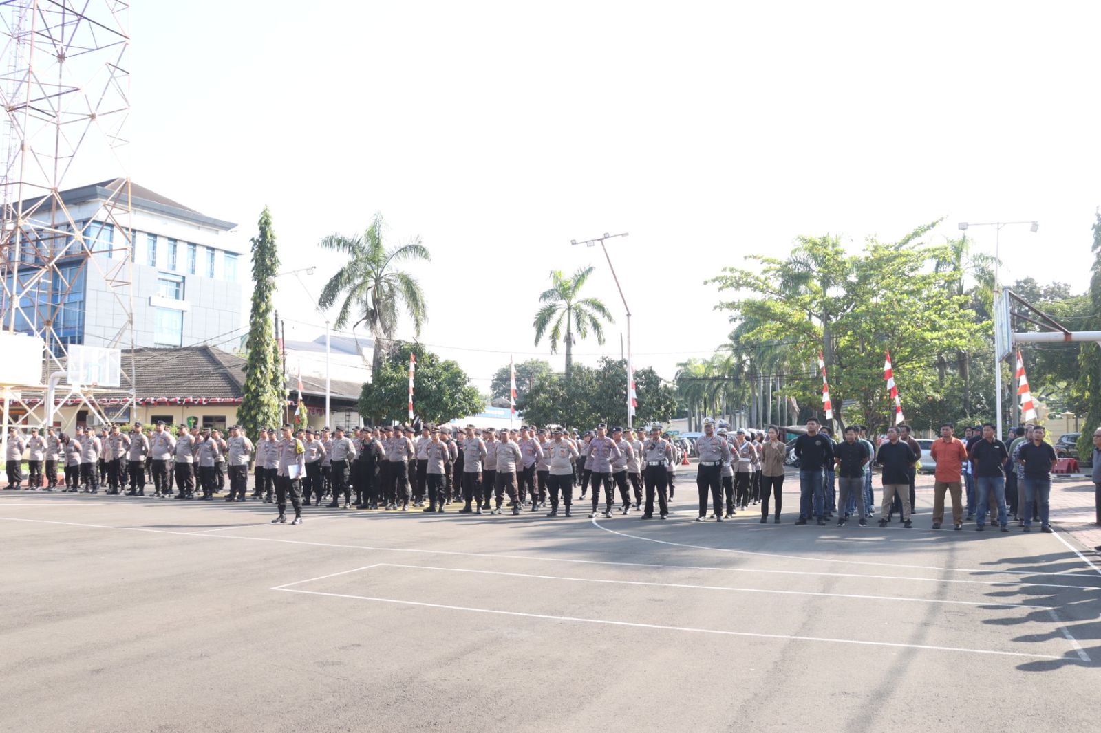 Apel dipimpin langsung oleh Kapolres Cilegon, AKBP Dr. Martua Raja Taripar Laut Silitonga, S.H., S.I.K., M.Si., dengan dihadiri oleh Wakapolres, para Kabag, Kasat, Kasi, serta personel dari seluruh fungsi yang tergabung dalam pasukan siaga.