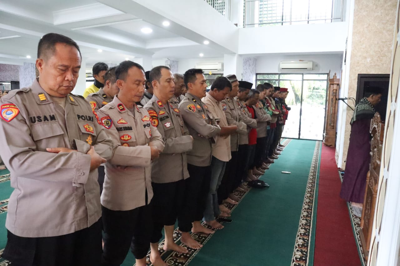 Cilegon – Suasana khidmat menyelimuti Masjid Al-Hidayah Polres Cilegon saat jajaran kepolisian bersama perwakilan komunitas Ojek Online (Ojol) Kota Cilegon melaksanakan kegiatan doa bersama dan salat ghoib. Kegiatan ini dipimpin langsung oleh Kapolres Cilegon, AKBP Dr. Martua Raja Taripar Laut Silitonga, S.H., S.I.K., M.Si., serta diikuti oleh Wakapolres, para pejabat utama Polres Cilegon, dan para ketua komunitas ojol beserta perwakilannya. Sabtu (30/8/2025).