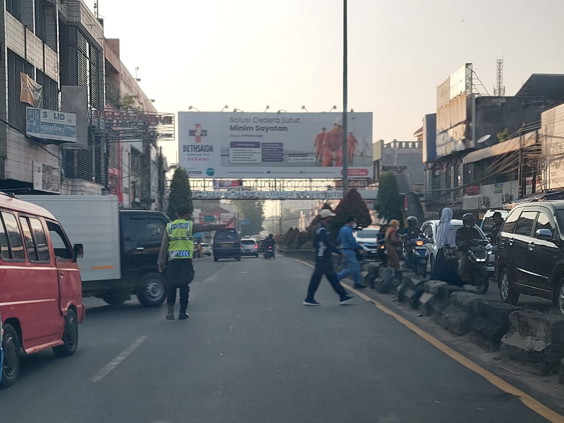 Kehadiran Polisi tingkatkan kenyamanan dan keamanan di jalan pada saat padat kendaraan, Polres Cilegon laksanakan strong point.