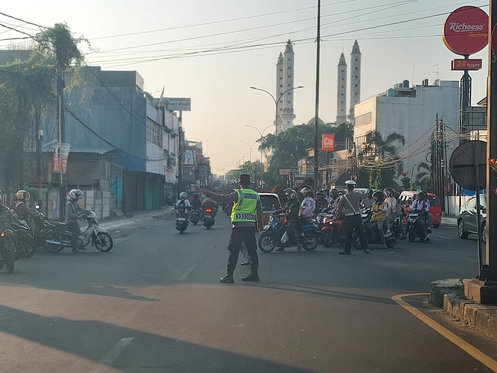 Pastikan arus lalu lintas lancar pada jam padat kendaraan Polres Cilegon gelar Strong Point.