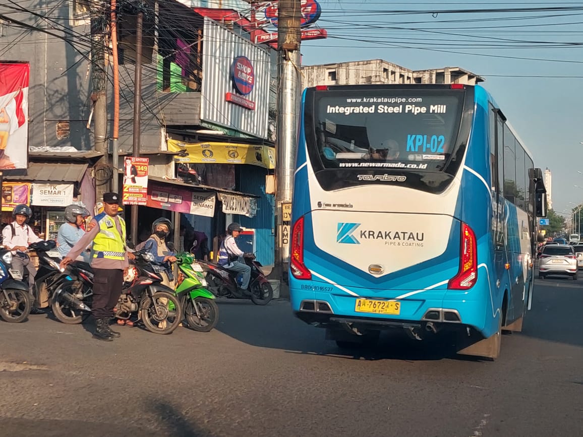 Jajaran Polres Cilegon Tingkatkan Pelayanan kepada masyarakat melalui Strong Point pengaturan lalu lintas.