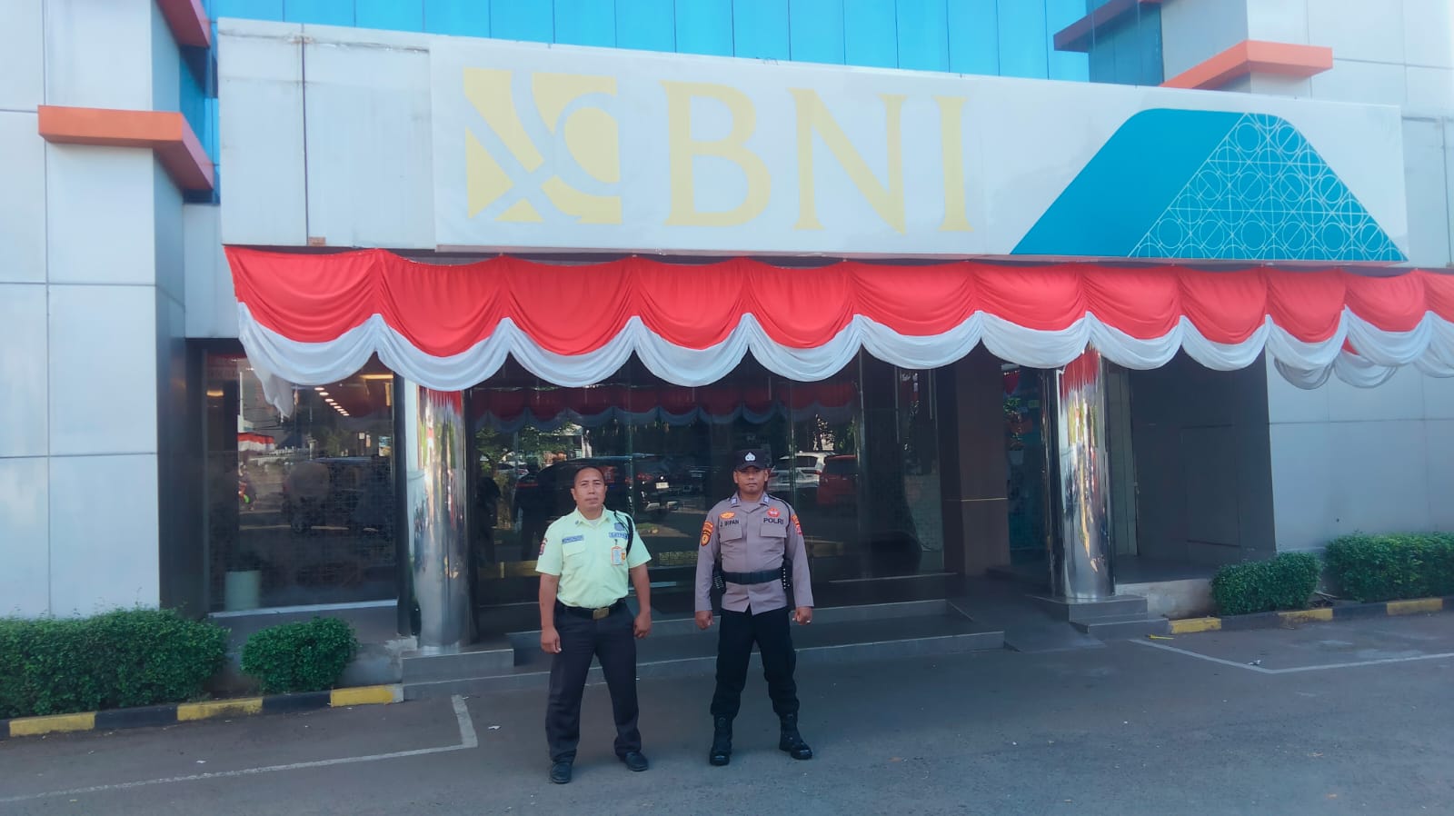 Pastikan kemanan dan kenyamanan nasabah, Satpamobvit Polres Cilegon hadir amankan Bank.