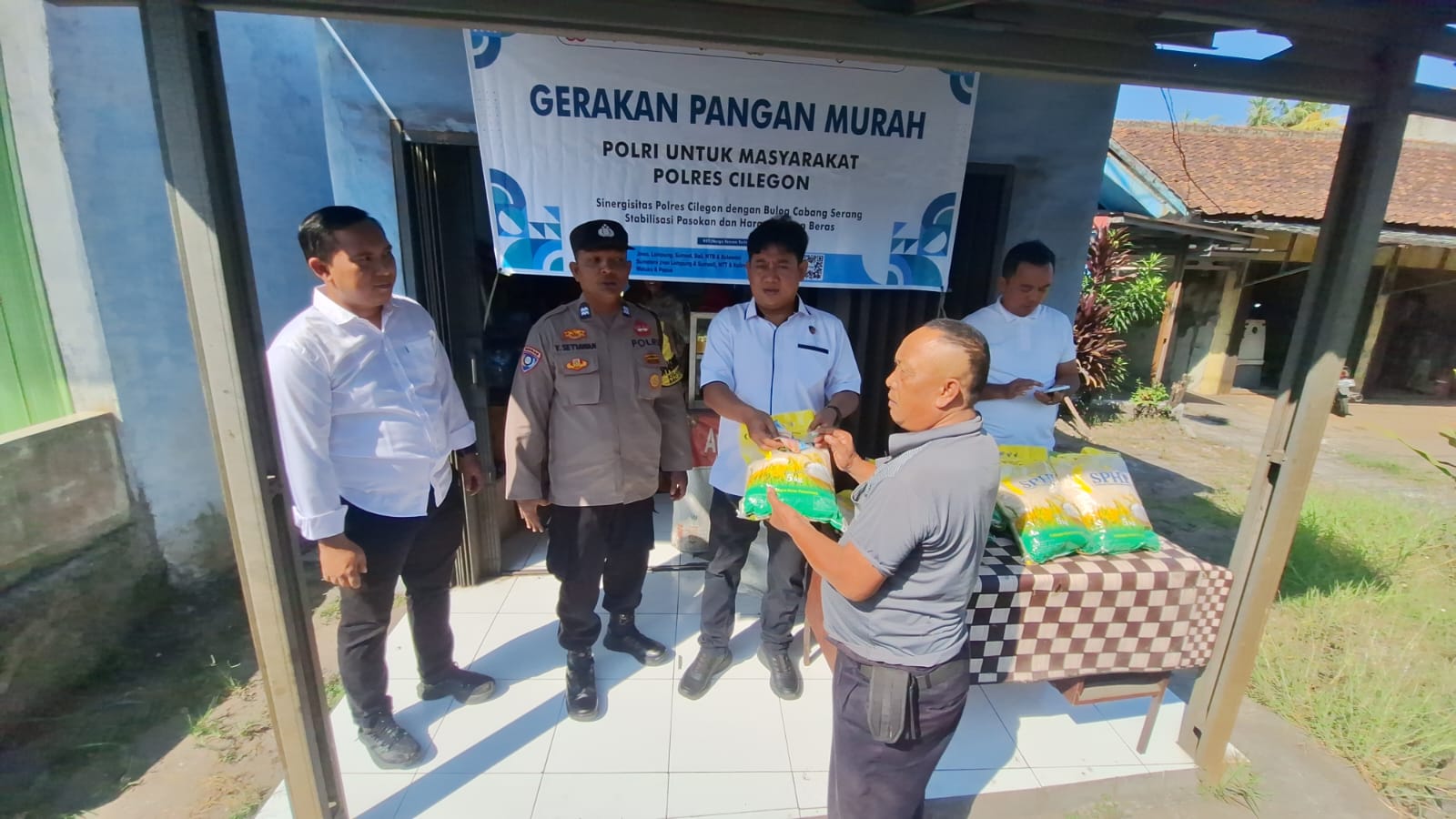 Cilegon - Polsek Ciwandan Polres Cilegon Polda Banten menunjukkan kepedulian terhadap ketahanan pangan nasional dengan menyalurkan sebanyak 200 karung beras 5 kg murah kepada masyarakat dalam kegiatan Gerakan Pangan Murah (GPM). Setiap karung berisi 5 kilogram, sehingga total beras yang dibagikan mencapai 1000 kilogram,Senin (01/09/2025).