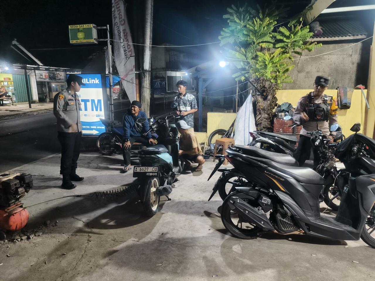 *POLRES CILEGON* - Patroli malam hingga dini hari ini rutin dilakukan oleh anggota Kepolisian Polsek Cinangka Polres Cilegon Polda Banten.