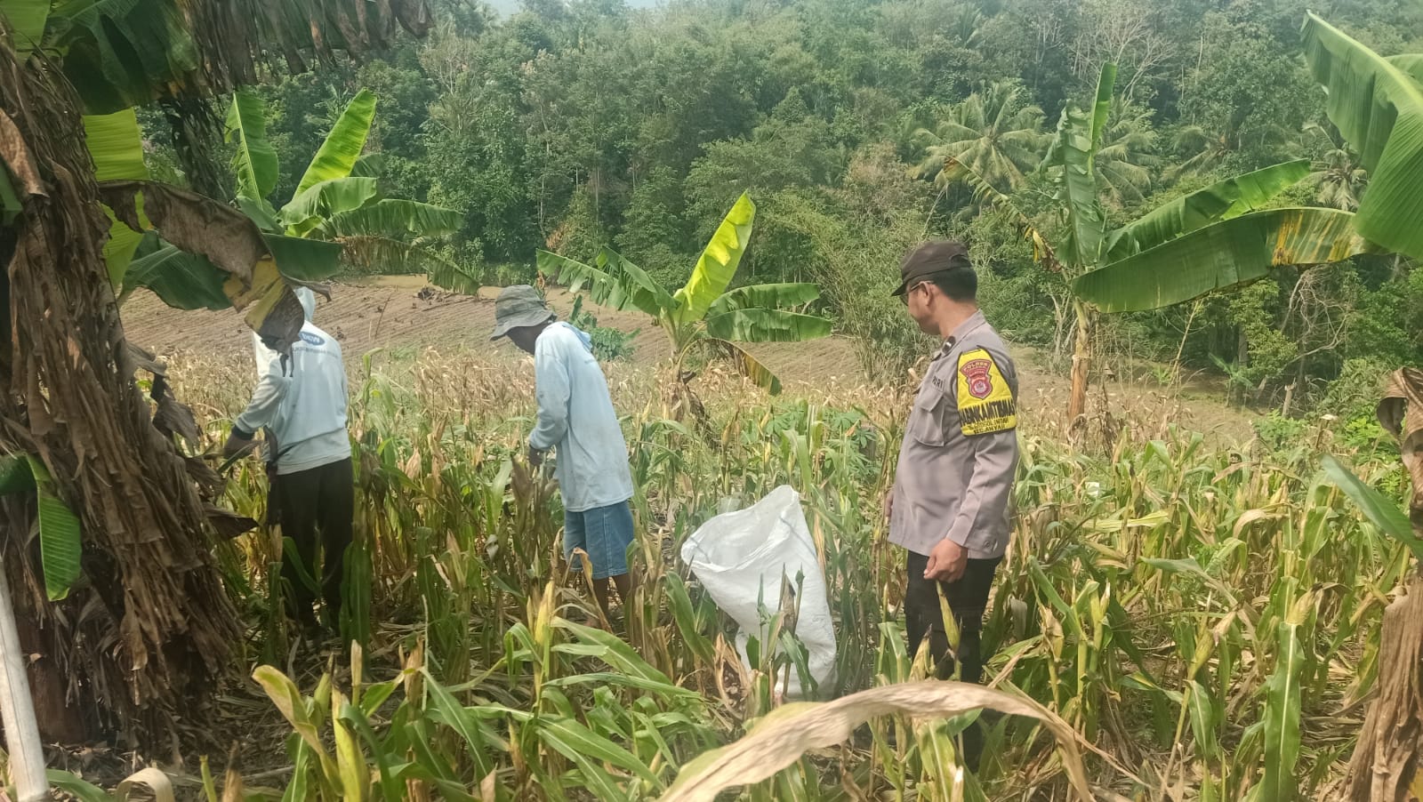 Bhabinkamtibmas Polsek Anyar Dampingi Panen Jagung, Dukung Ketahanan Pangan