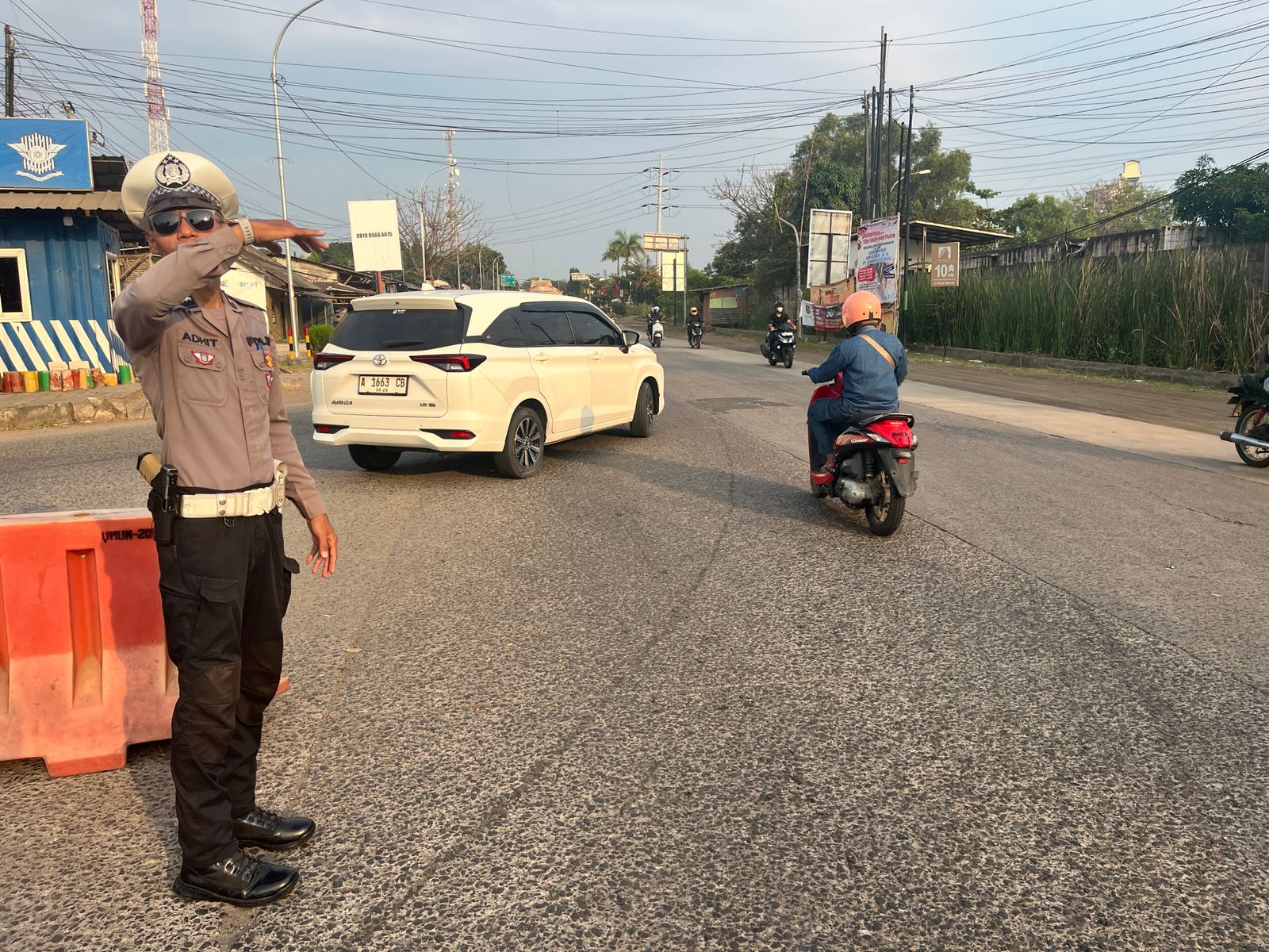 Cilegon - Personil Polsek Ciwandan Polres Cilegon Polda Banten melaksanakan giat Strong Poin Pengaturan Lalu Lintas Disimpang Brown Kelurahan Gunung Sugih guna menciptakan ketertiban, keamanan dan Kelancaran Lalu-lintas bagi masyarakat, Selasa (02/09/2025).