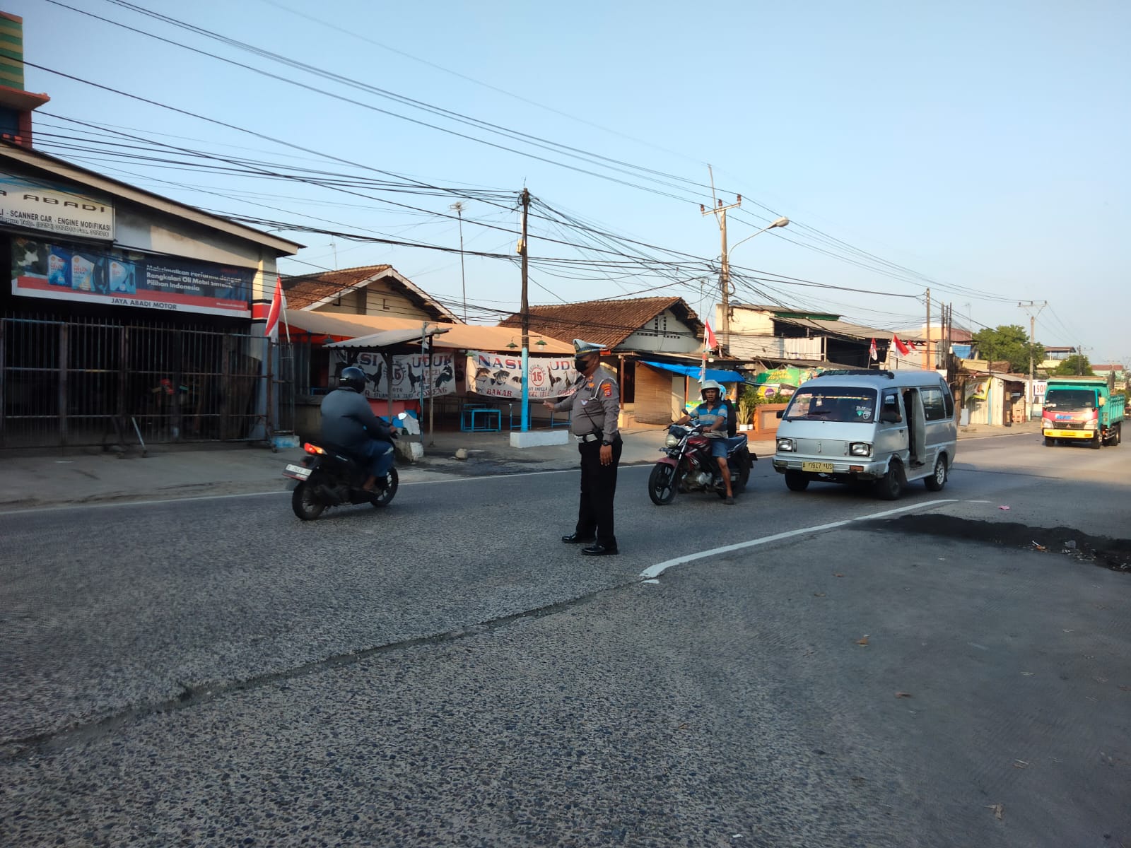 Cilegon - Personil Polsek Ciwandan Polres Cilegon Polda Banten melaksanakan giat Strong Poin Pengaturan Lalu Lintas Disimpang Brown Kelurahan Gunung Sugih guna menciptakan ketertiban, keamanan dan Kelancaran Lalu-lintas bagi masyarakat, Selasa (02/09/2025).