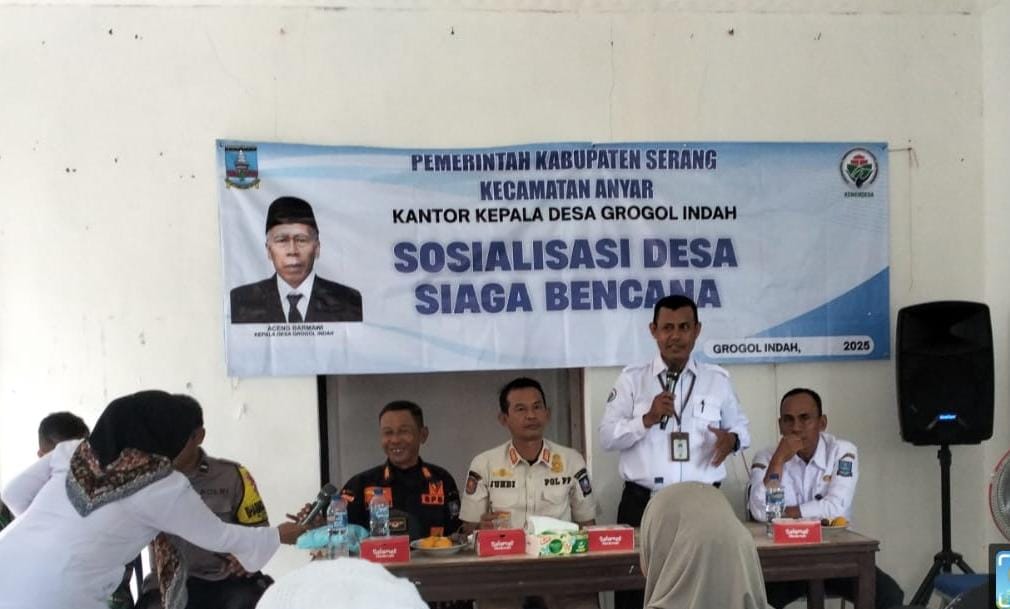 Polsek Anyar Hadiri kegiatan Sosialisasi Siaga Bencana antisipasi kesiapsiagaan menghadapi bencana Di Desa Grogol Indah