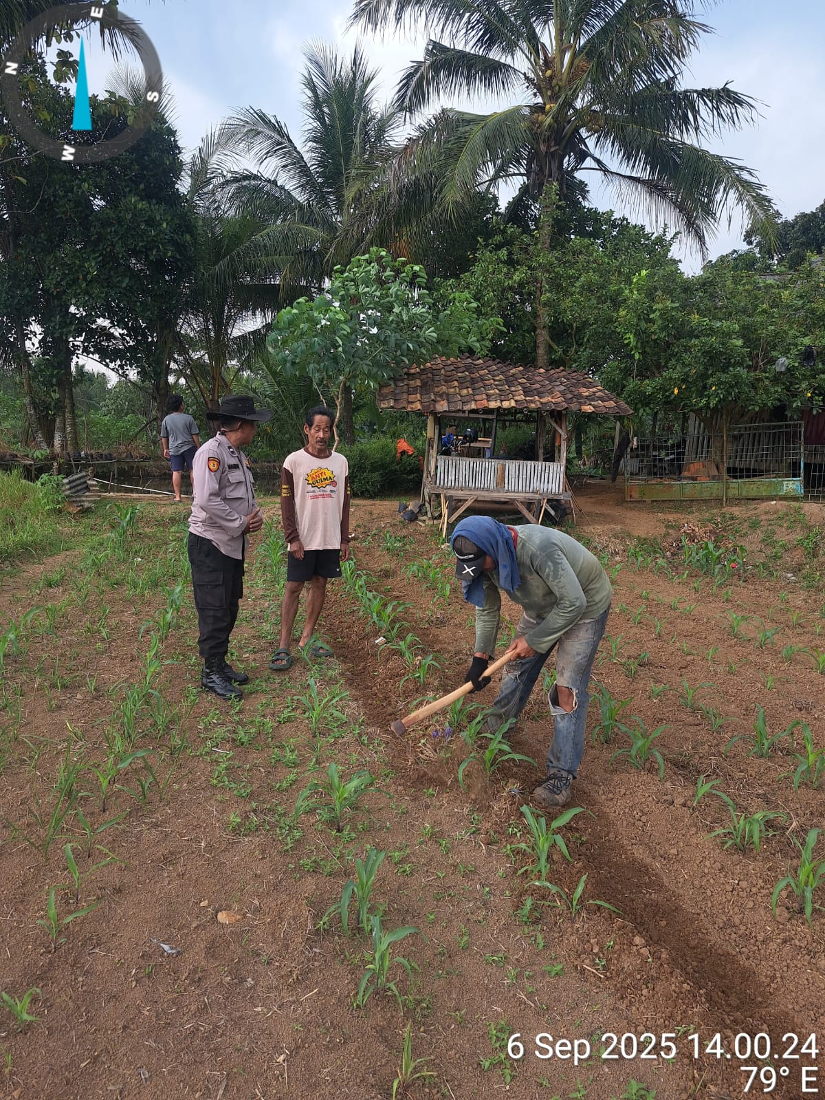 Cilegon - Polsek KP Banten Polres Cilegon Polda Banten berkolaborasi dengan Polsek Mancak melaksanakan giat pengecekan kegiatan pemupukan lahan Pertanian Jagung. Sabtu (06/09).