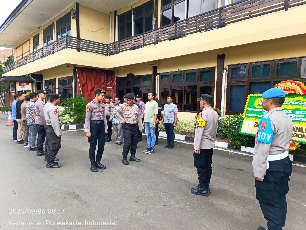 Cilegon, personel Satreskrim Polres Cilegon Polda Banten melaksanakan piket di penjagaan pintu masuk Polres Cilegon Polda Banten untuk memastikan mako Polres Cilegon dalam keadaan aman dan nyaman dalam melayani Masyarakat tanpa adanya gangguan kejahatan. Sabtu (06/09/2025).