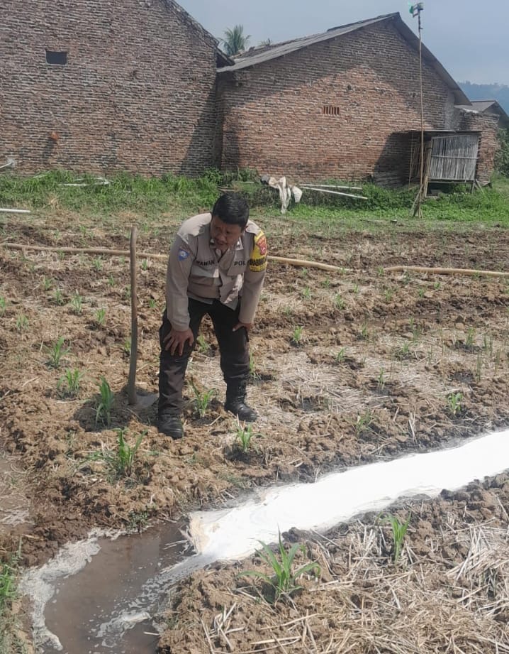 Bhabinkamtibmas cek dan Melakukan Penyiraman Tanaman Jagung be4sama warga binaan